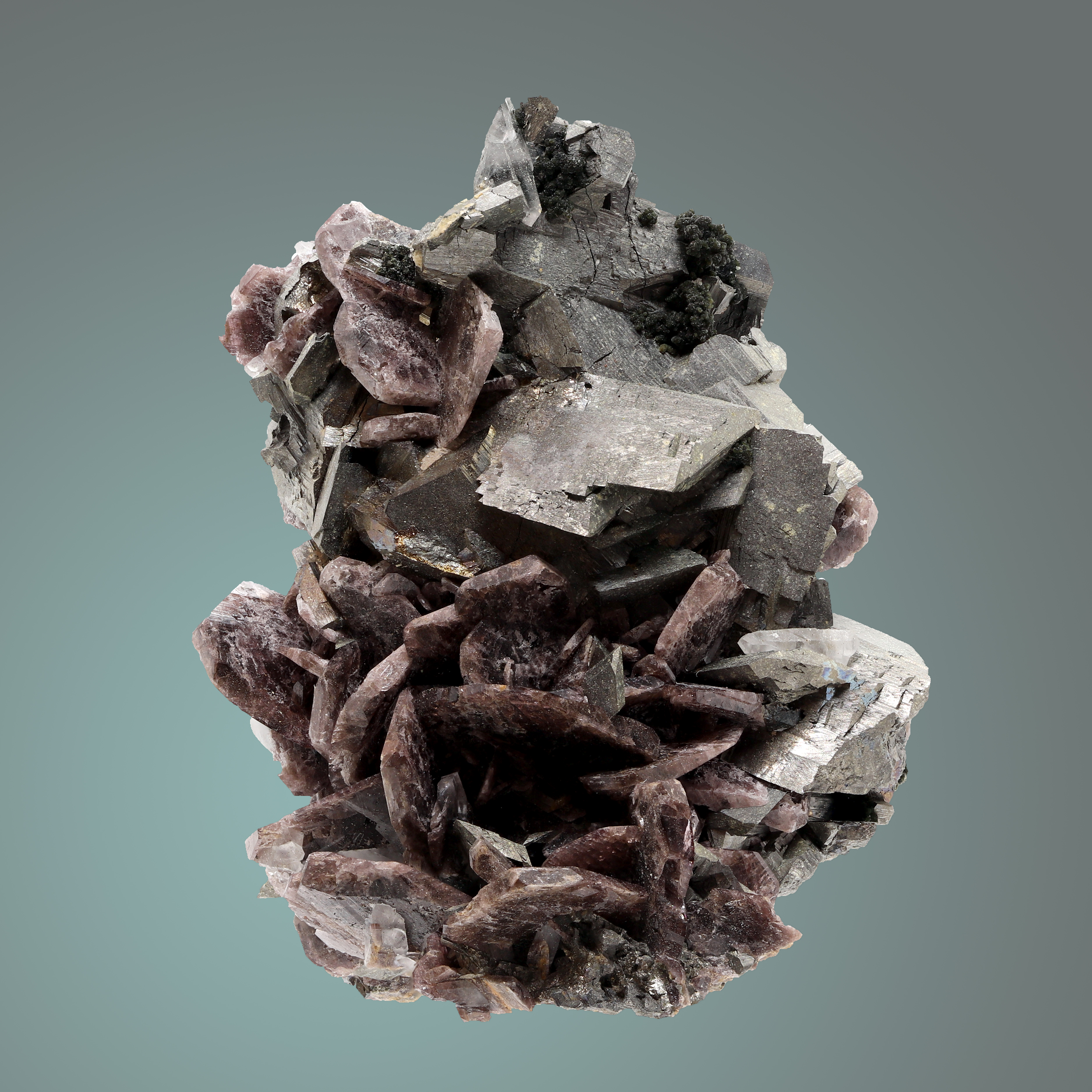1200 Axinite-(Fe) w/ Arsenopyrite, Colebrook Hill October 12, 2020 James Australasia Australia Tasmania Axinite-(Fe), Arsenopyrite and some small globular dark green-black Chlorite crystals from the Colebrook Hill Mine, Rosebery, Tasmania. [55x45x30mm] click to view full size image …